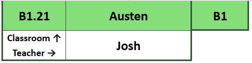 Here you can see confirmation of the classroom (B1.21), group name (Austen), level (B1), group B (the green colour), and the teacher (Josh).