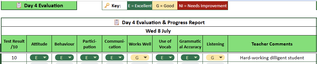 The image above shows the Day 4 Evaluation section but the Day 8 one is identical.